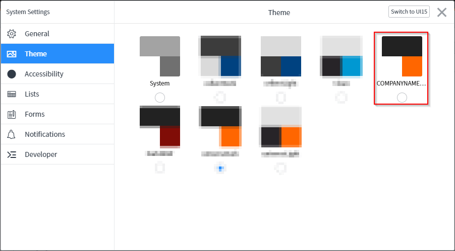 | $navpage-nav-unselected-color | Unselected navigation tab icon and favorite icons color | Navigate to System Properties > Basic Configuration UI16 > Unselected navigation tab icon and favorite icons color | |